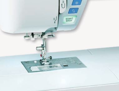 Even consistent fabric feeding courtesy of the Superior Feed System Plus, featuring a 7-Piece feed dog to ensure that even the thickets, multi-layer projects are able to move under the needle with precision and ease. The One Step Plate Converter allows you to switch from the zigzag to straight stitch plate (optional) at the touch of a button – no screwdrivers required!