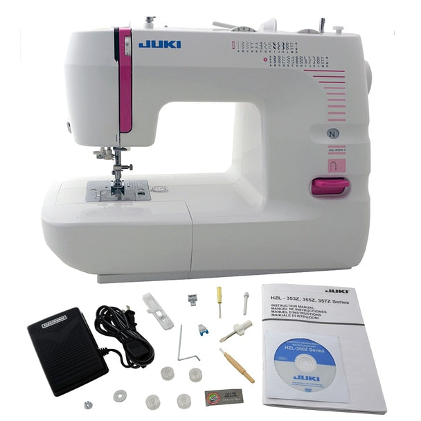 Quality performance with simple operations are two features guaranteed in the JUKI HZL-355ZW. The compact HZL-355ZW comes with a vast array of features including 26 built-in sewing patterns, automatic needle threader, automatic one-step buttonholing, presser foot pressure adjustment, and bright LED light that illuminates the work area and reduces eye fatigue.