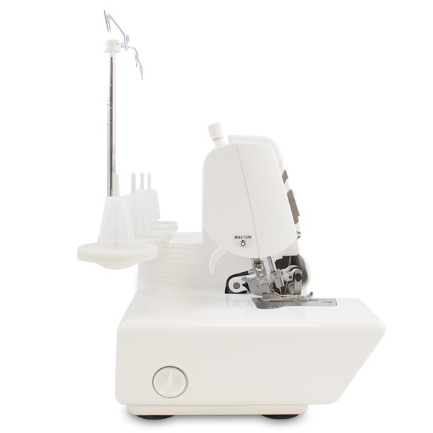 Sew both stretchy and knit fabrics with the 2/3/4 thread overlock with chain stitch and cover stitch, 3-thread narrow overlock, and 3-thread rolled hem.