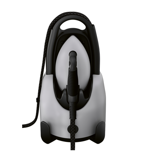 • Easily iron on a traditional board or steam fabrics directly on a hanger.