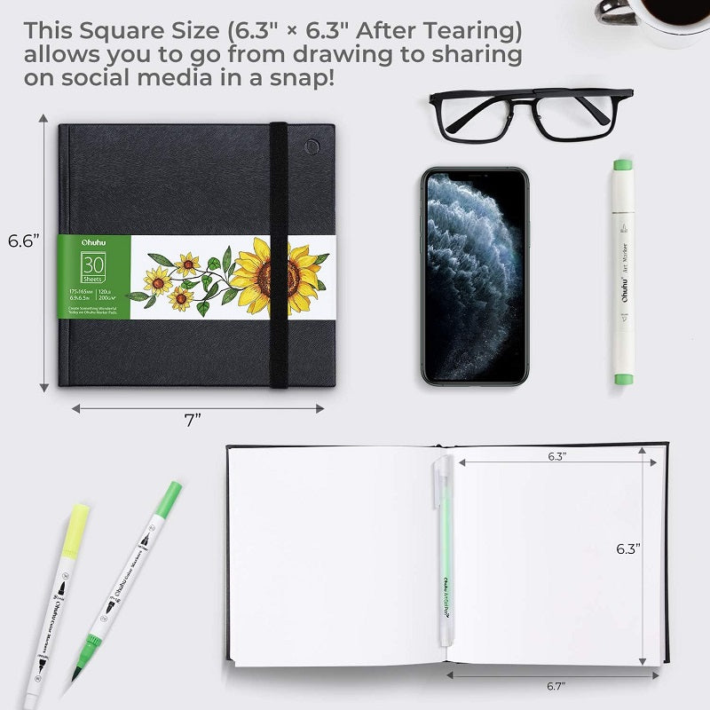 Ohuhu 6.9x6.5" 30 Sheet Mini Square Alcohol Marker Pad 200GSM Y44-83000-14