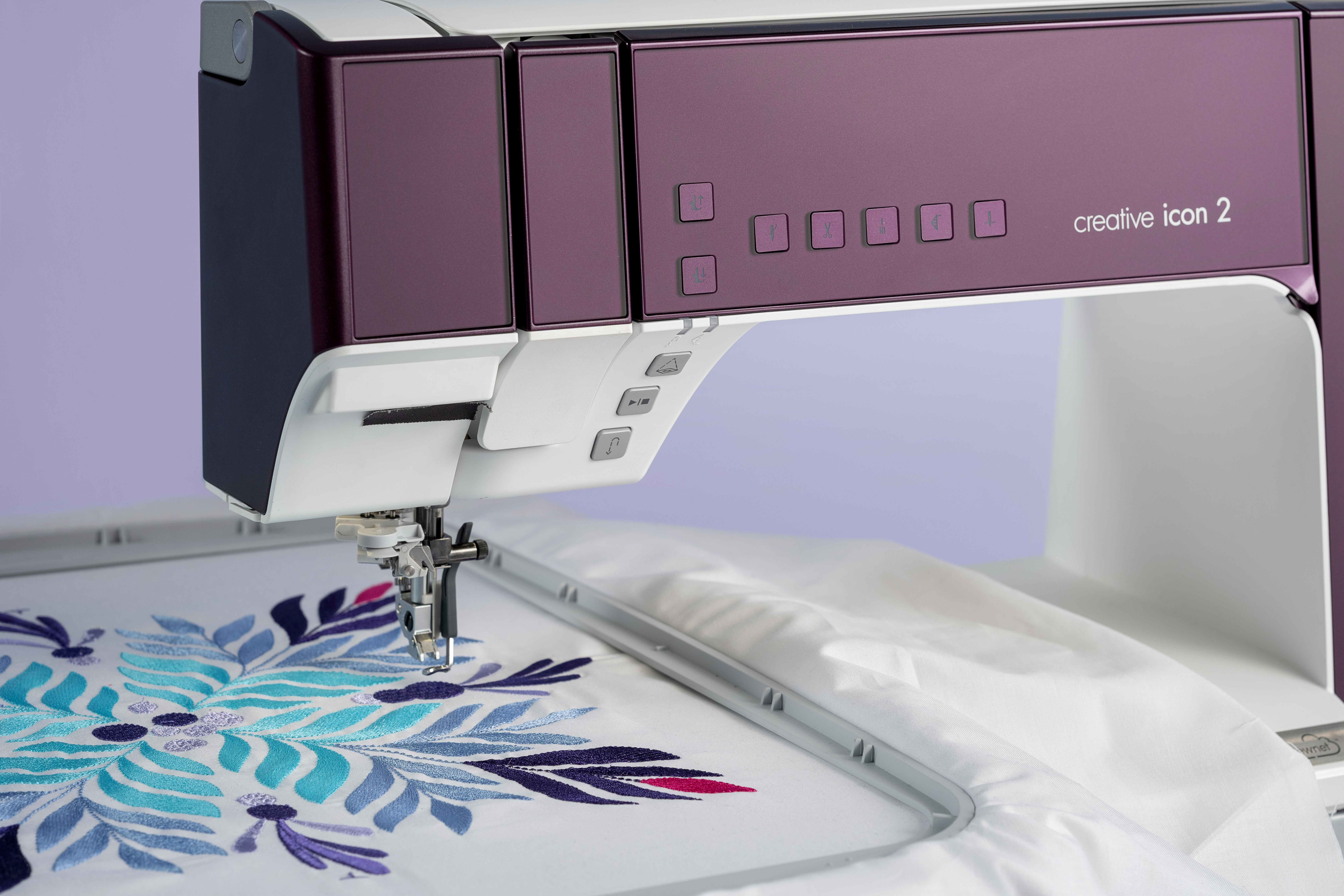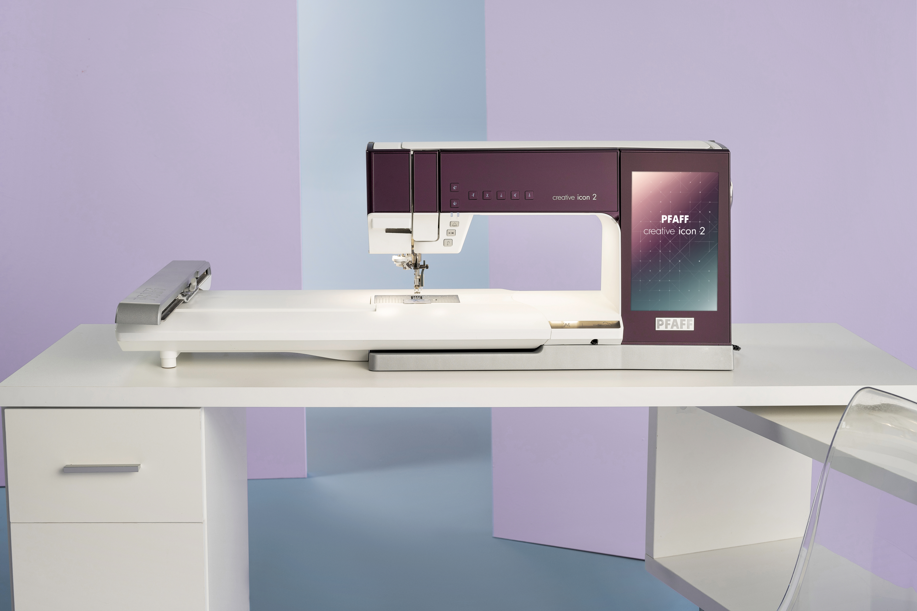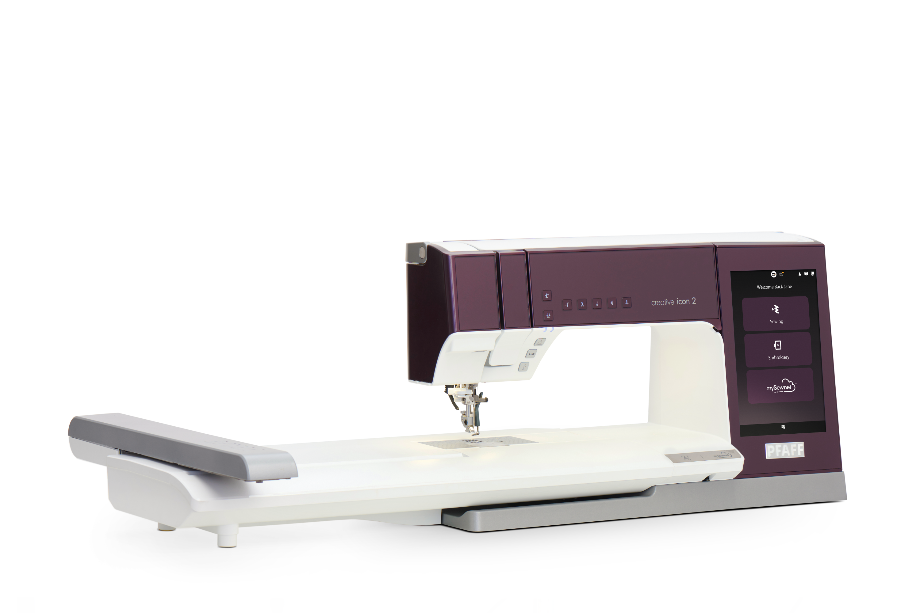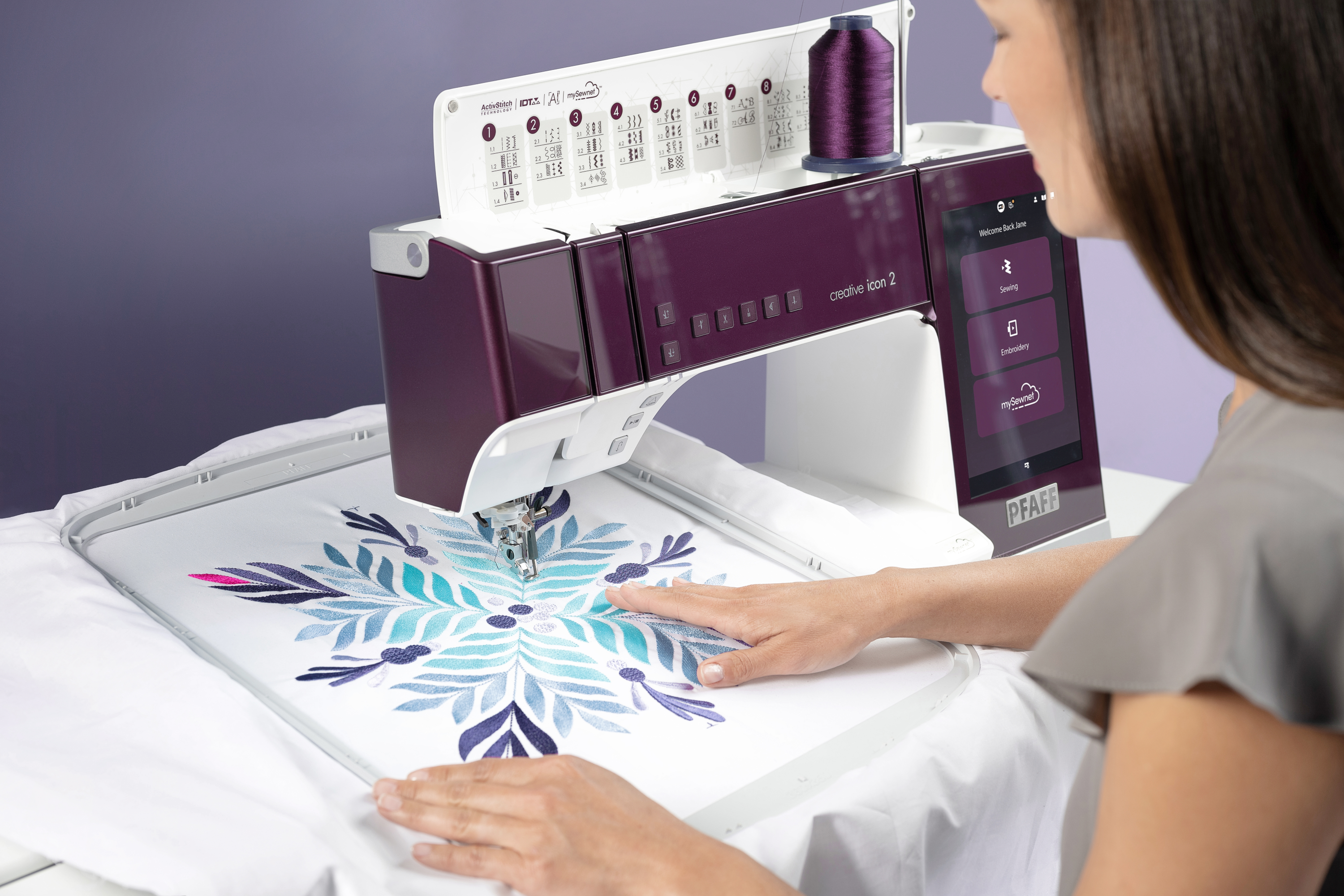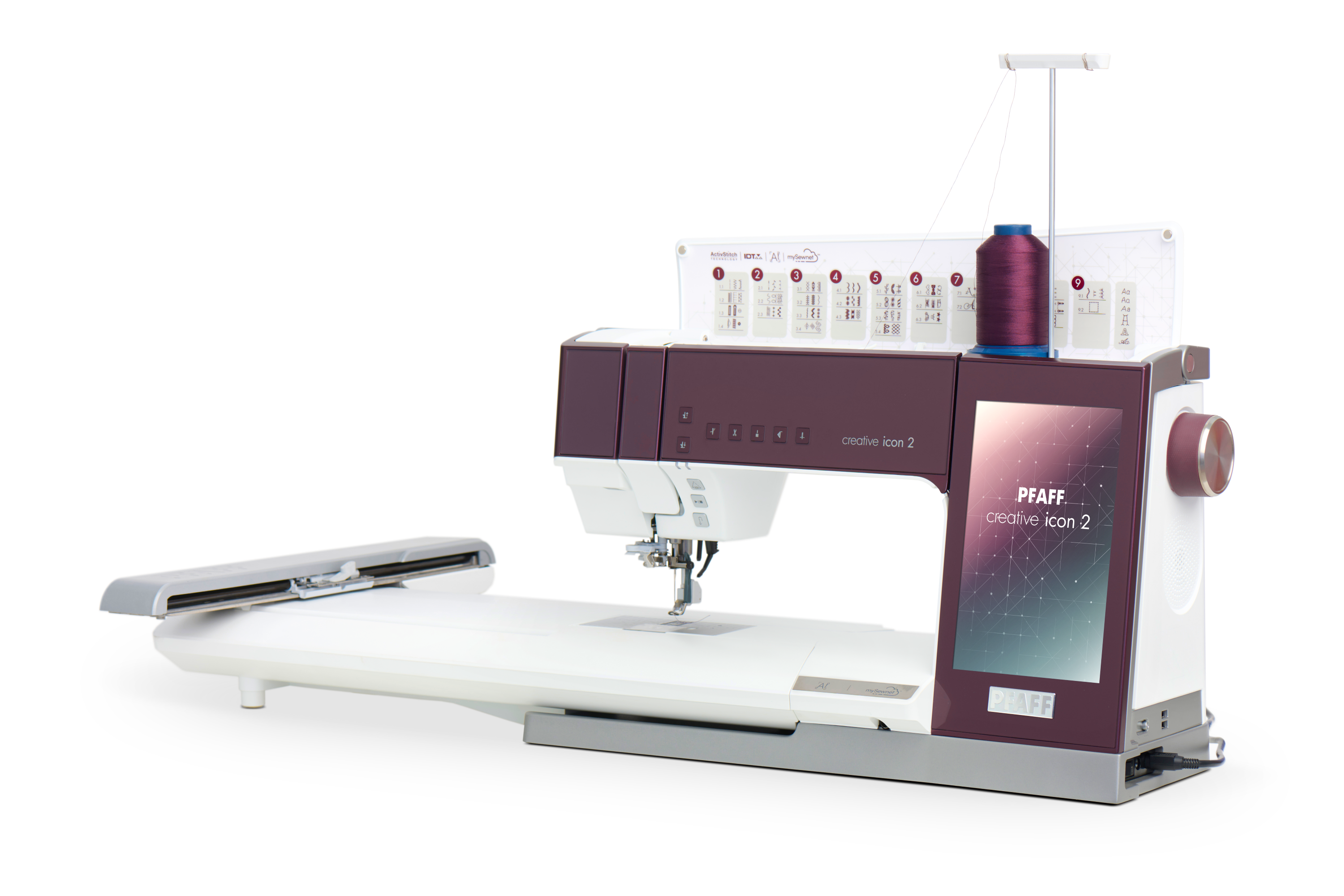 PFAFF Holiday Sales Event: For a limited time receive a FREE Embellishment Attachment, Metal Quilter's Hoop, Embellishment Sampler Kit, Grand Quilter's Hoop AND 1yr CREATIVATE Essential subscription when you purchase a creative icon 2 Purple Aurora Sewing and Embroidery Machine at the World Weidner Creative Center!