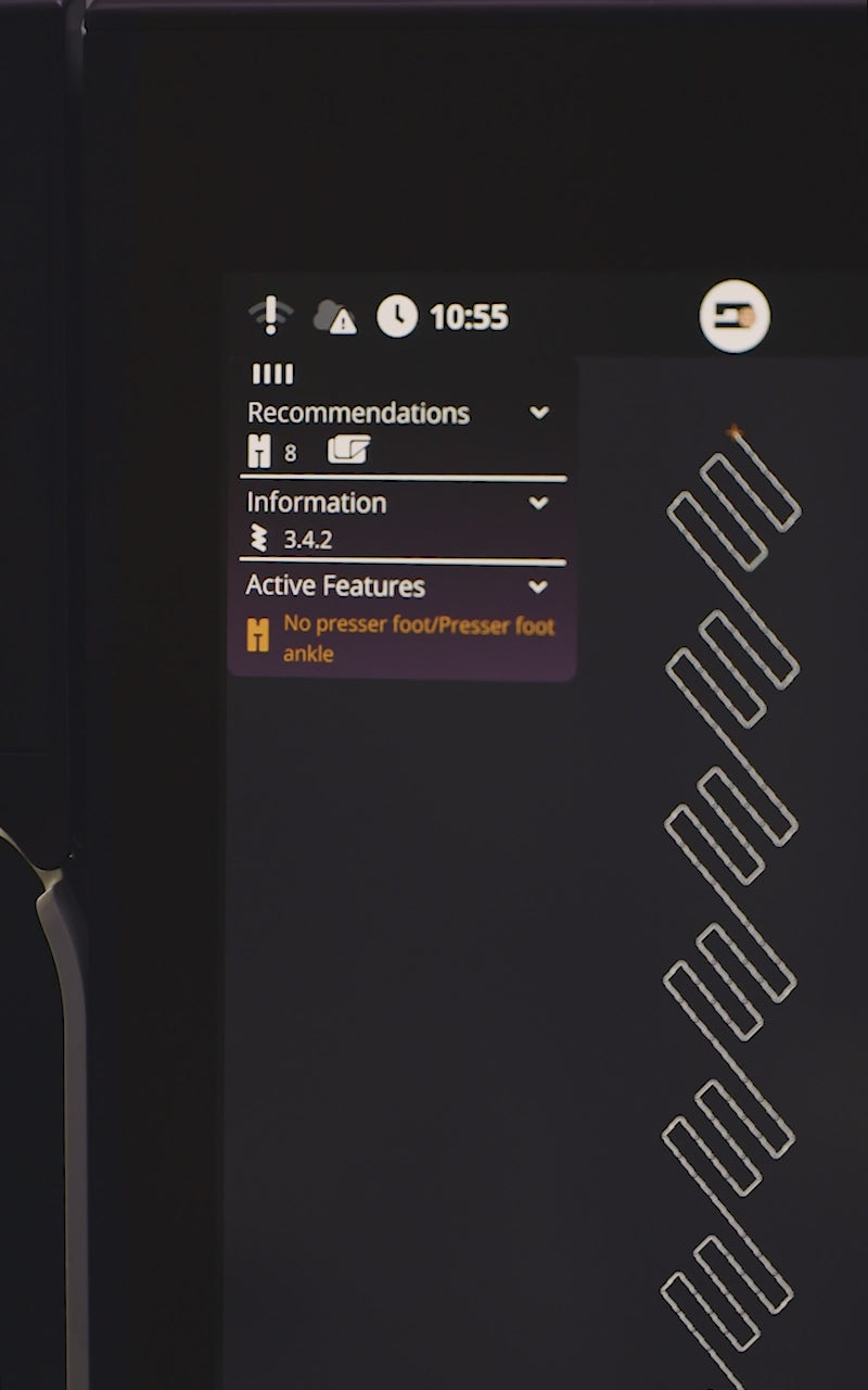 Attach any included presser foot and the machine will inform you if the foot is compatible with your stitch selection. Plus always enjoy the most advanced sewing features and functionality with free automatic software updates.