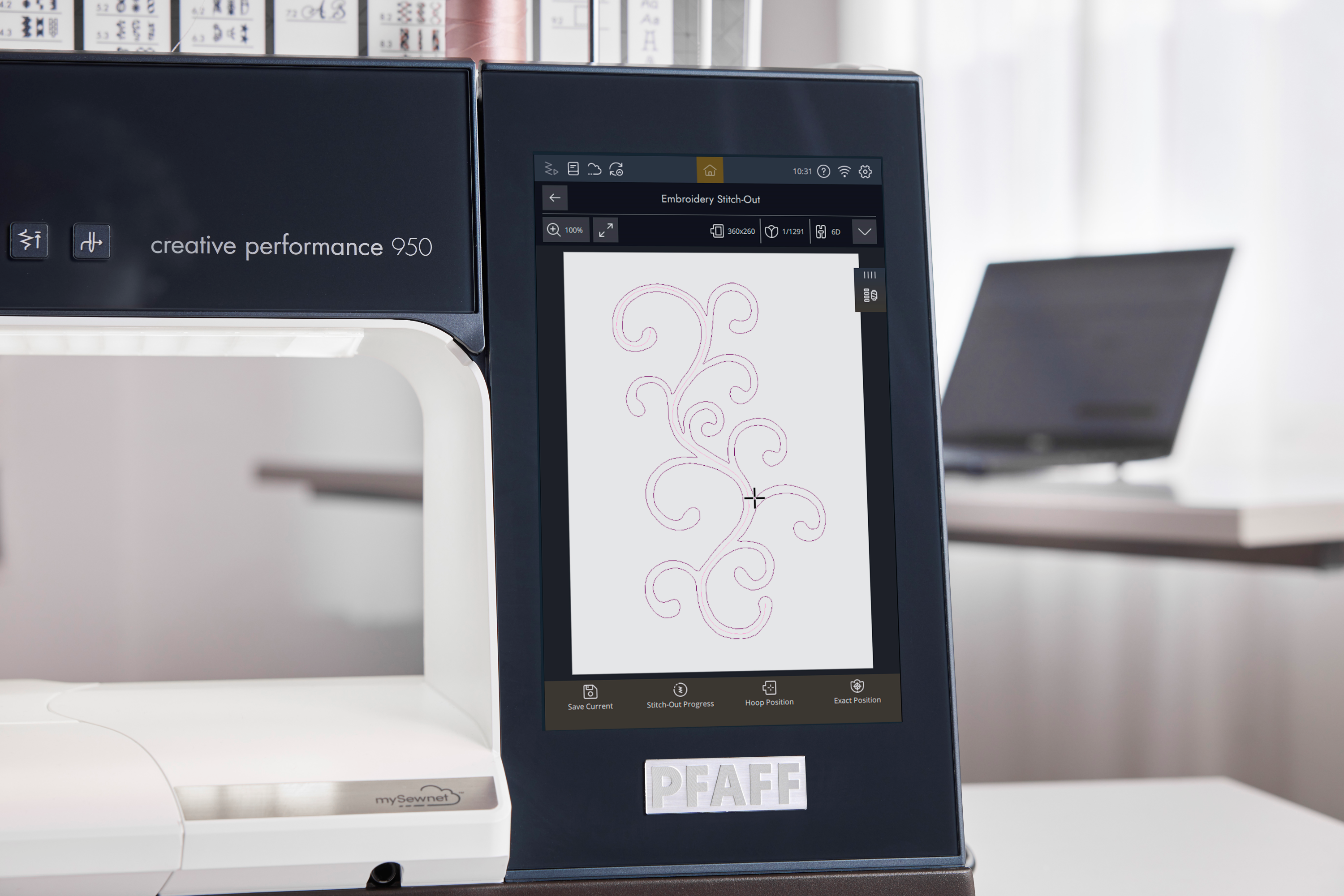 Ideal for passionate sewists, the Creative Performance™ 950 fulfill every sewing aspiration, offering features for utility sewing, garment making, quilting, embroidery, and more. This machine was crafted with many top-of-the-line features like mySewnet™ connectivity, tablet-like capacitive touch screen, and precision you depend on.
