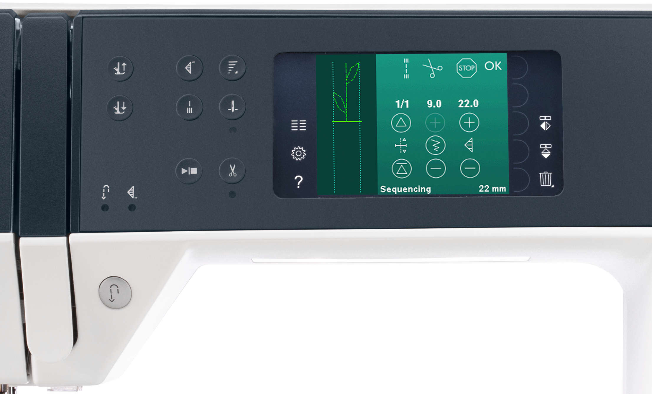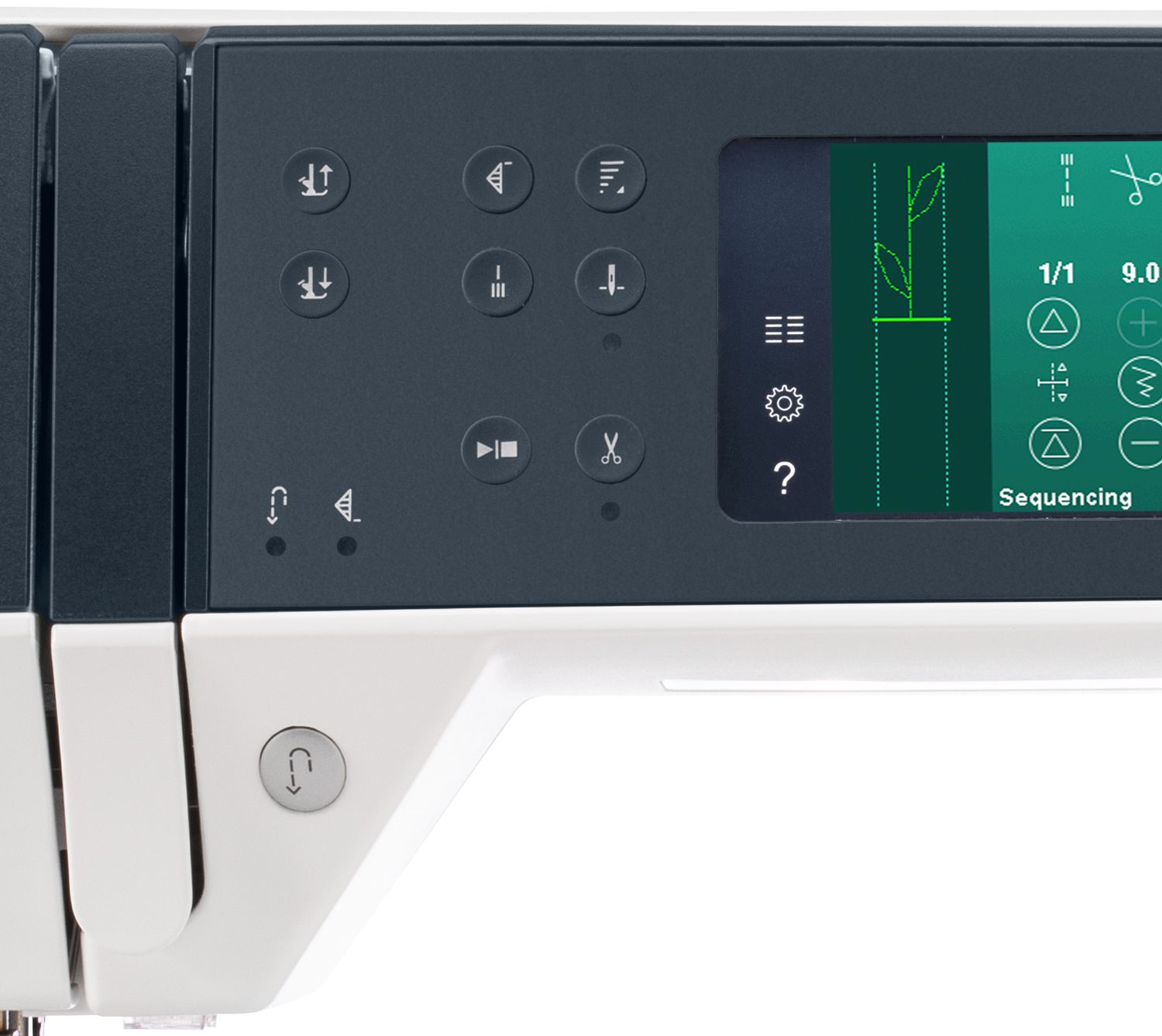 Discover the sophisticated features and design, including color touch screen, large sewing space, 428 stitches, exclusive stitch techniques plus 3 free-motion modes. Elegant functionality is delivered with poise and precision. Discover the depth and harness the artful ability of this sophisticated machine.