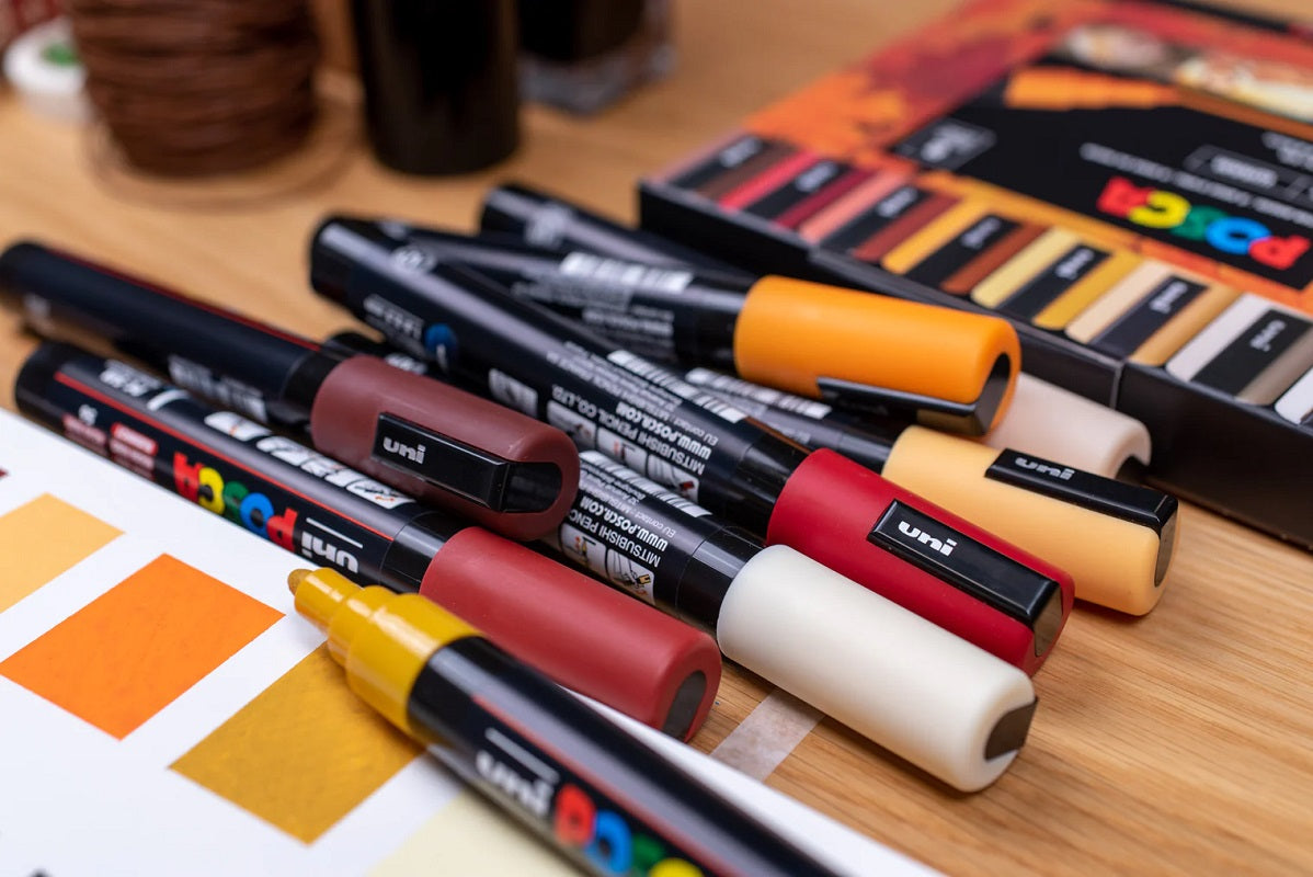 The Posca Paint Marker 8 Colors PC-5M Warm Colors Set is ideal for creating vibrant art pieces. These permanent and non-toxic markers feature vivid colors and all-weather, water-resistant ink. Perfect for a wide range of surfaces, including glass, plastic, metal, and wood.