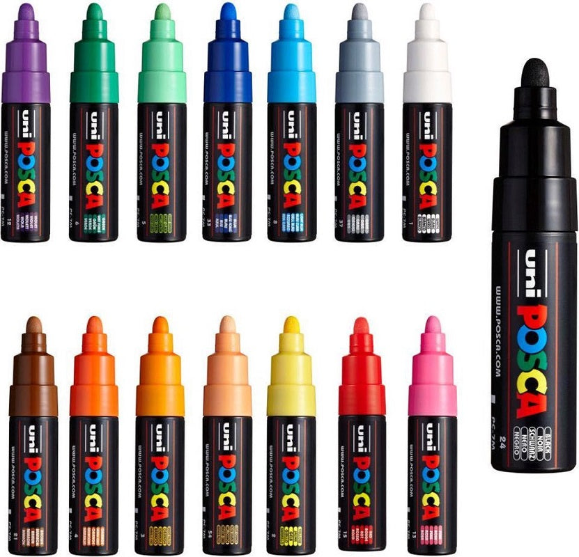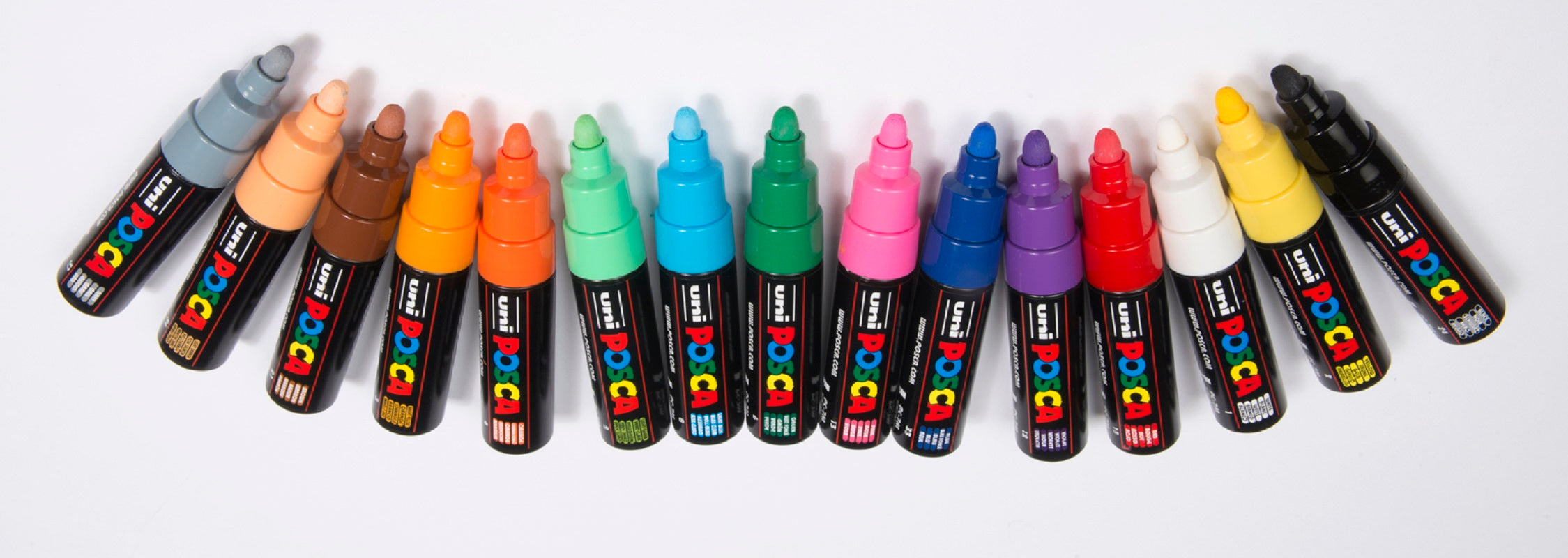 Dense and opaque, POSCA paint is ideal for layering! Dark colours can be applied over light colours or light colours over dark. Thanks to its fast drying time, layering can be carried out with no smudges.