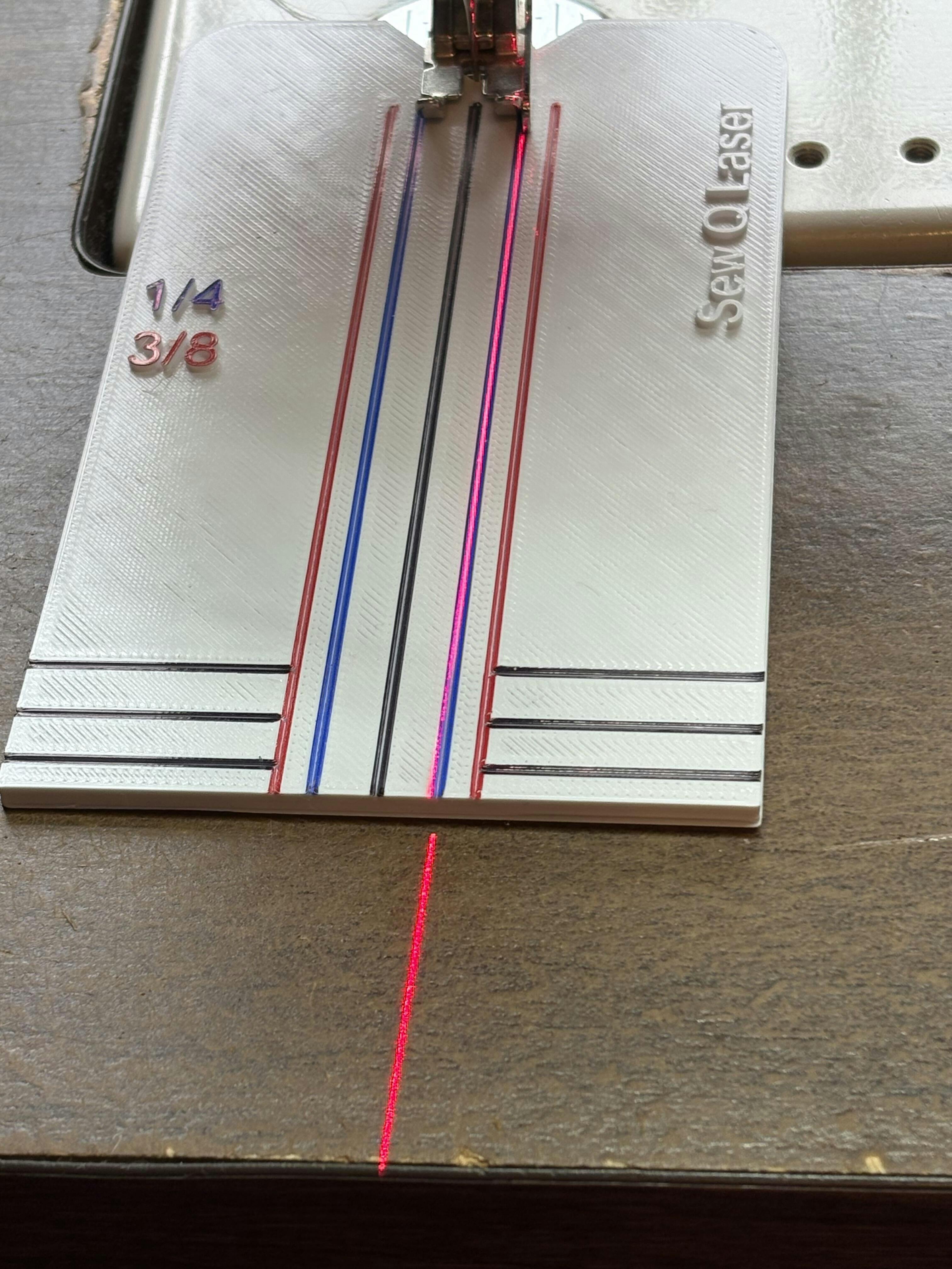 Lining up perfectly straight seams can take patience and skill. The Sew Q Laser makes it easy! This device can attach to nearly all sewing machines above the needle area and projects a laser directly onto your fabric-making it now effortless to keep your seams completely straight.