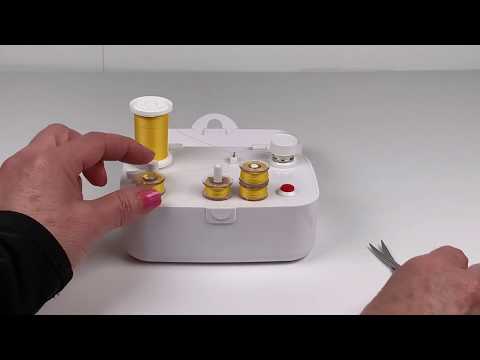 Save time and stay organized with the SINGER Portable Bobbin Winder. The one-touch auto winding is paired with an auto shut off that stops when the bobbin is full. Portable and powered by cord, or battery, ensures that you have thread with you, wherever you may go!