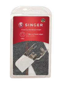 The SINGER side cutter attachment trims fabric while you sew a seam. Sew seams and seam finishes simultaneously. The SINGER side cutter attachment gives garments a professional finish. Just use the zigzag or overedge stitch to complete your look!