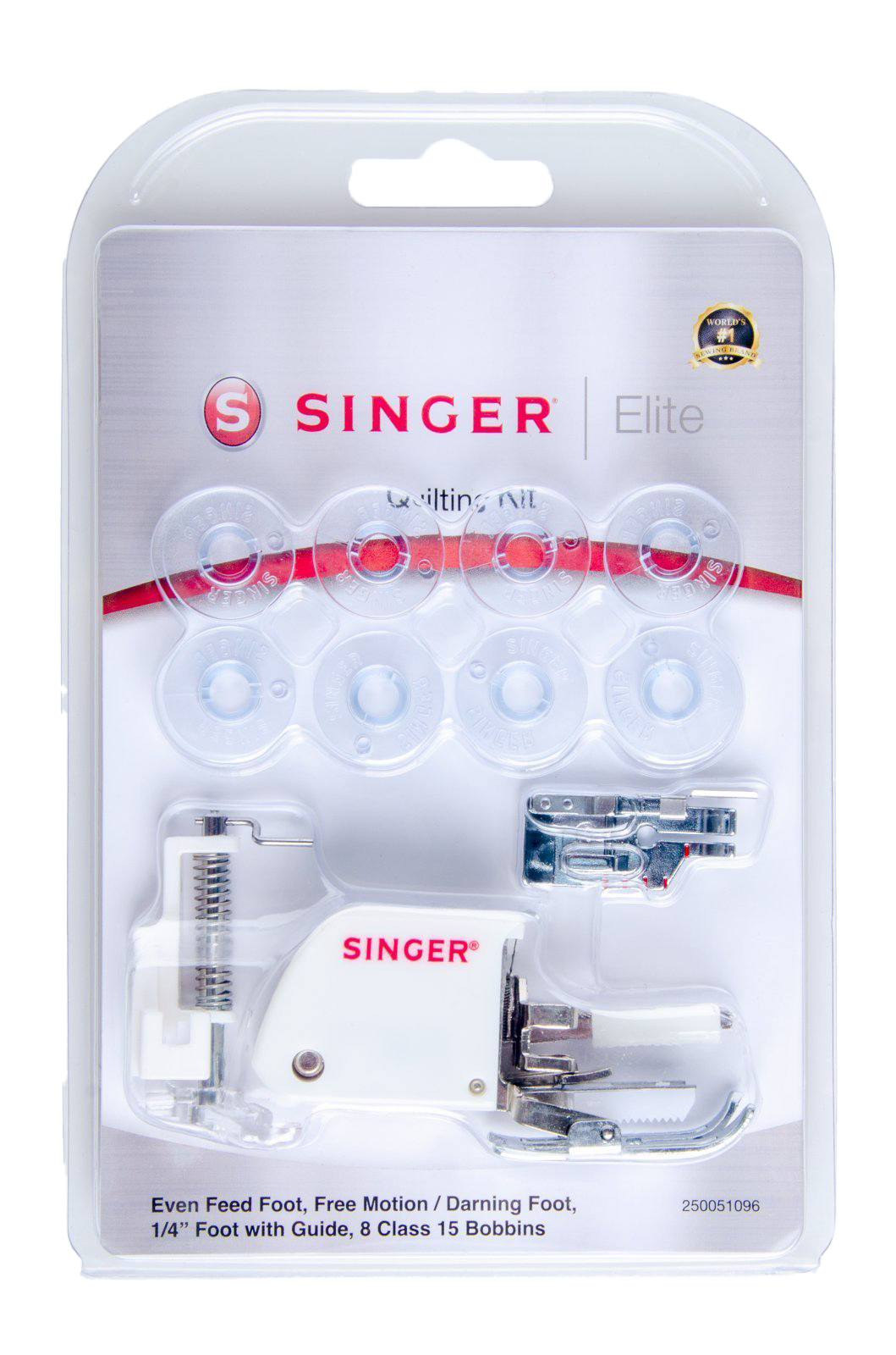The Singer Elite quilting kit includes accessories you need that can get you up and started into quilting as soon as possible. This kit works well with the singer elite machines.