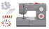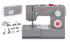 Accessories Accessories include: All Purpose Foot, Zipper Foot, Buttonhole Foot, Button Sewing Foot, Edge/Quilting Guide, Pack of Needles, Bobbins (Class 15 transparent), Spool Caps, Auxiliary Spool Pin, Spool Pin Felt, Screwdriver, Seam Ripper/Lint Brush and Soft Dust Cover.