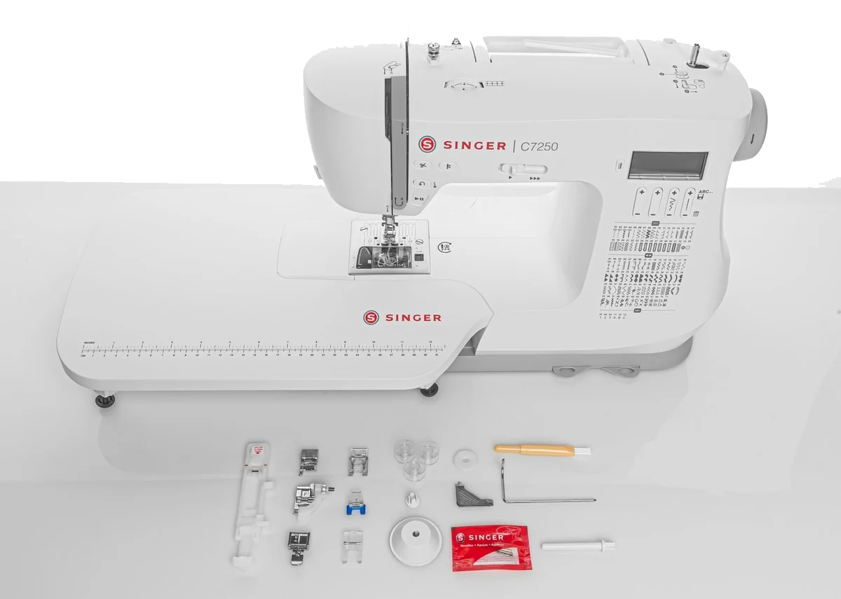 With electronic-enabled features and an LCD screen, the C7250 Computerized Sewing Machine is great for beginners and advanced sewists alike. The 200 built-in stitches offer 417 stitch applications to give you the right stitch for any fabric, from lightweight sheer to multiple layers of denim. Sew buttonholes in one easy step with consistent results every time. You can even choose from 8 different styles of buttonholes. Programmable Needle Up/Down is a must-have for quilting, sewing appliques and even topstitching. When you select a stitch, the optimum stitch length and width are selected for you, saving time. Customize stitches to personalize projects using adjustable stitch length and stitch width, viewable on the LCD screen.