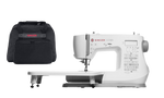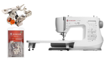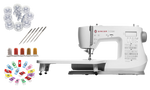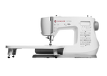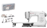 A large extension table is included, providing a level sewing surface for larger projects like quilts.